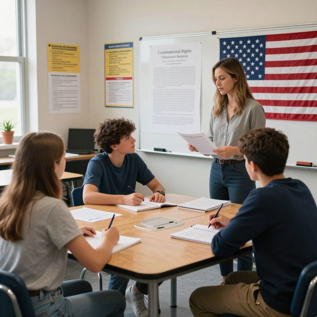 Aulas estruturadas abordam princípios constitucionais, direitos humanos e deveres civis, com foco na formação crítica e no respeito às normas democráticas.